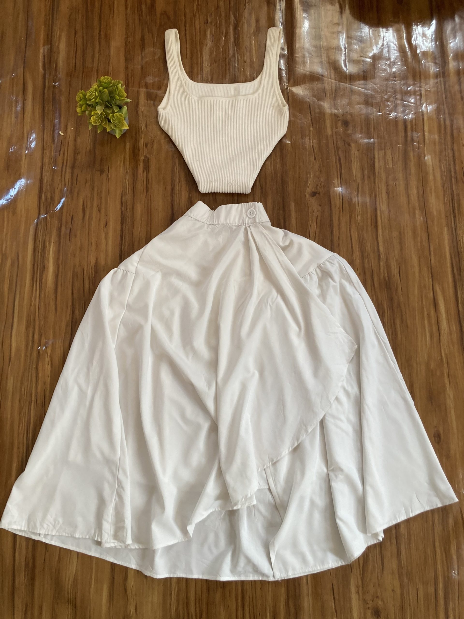 White flared skirt with a wrap