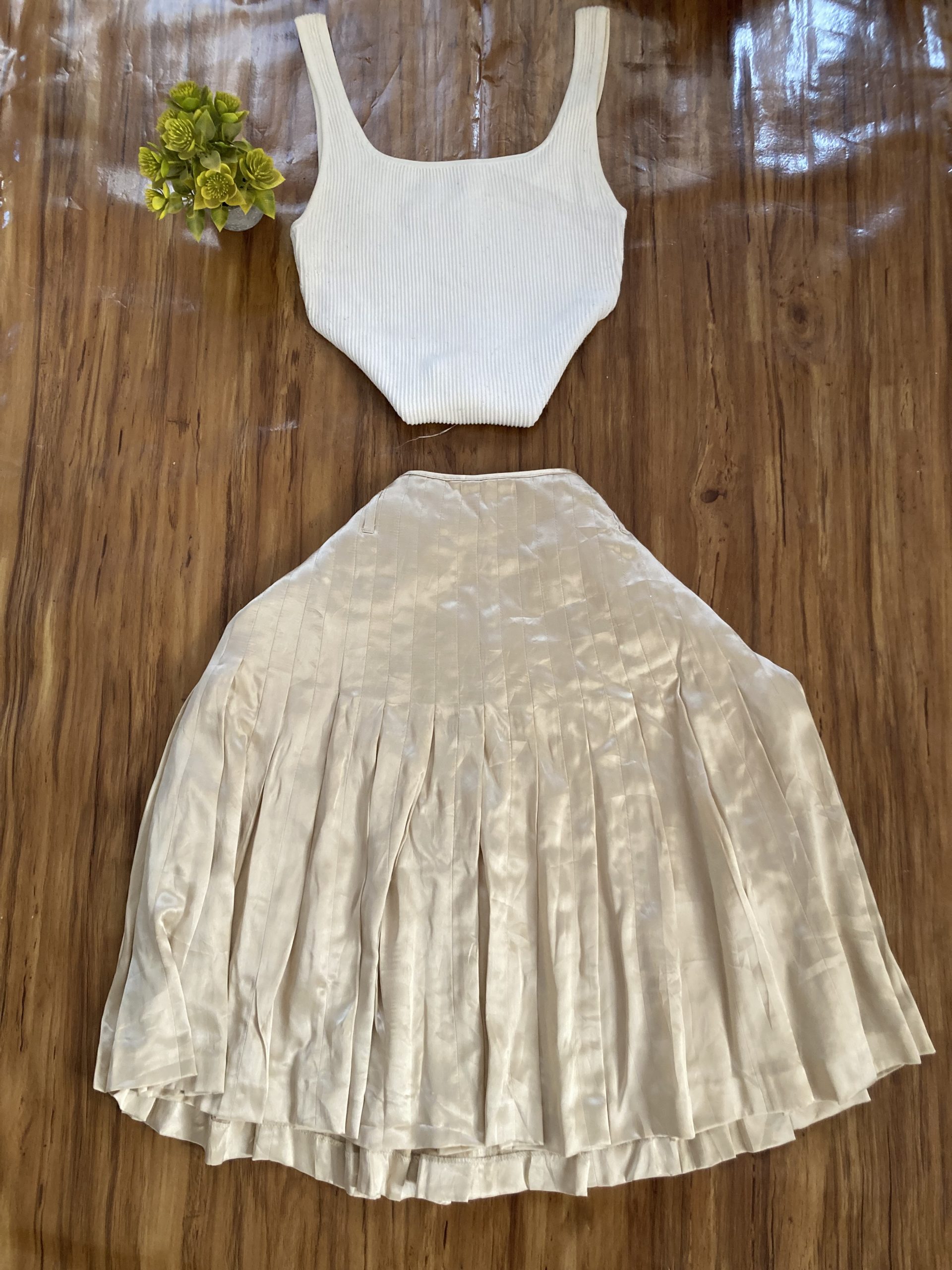 Pleated satin skirt